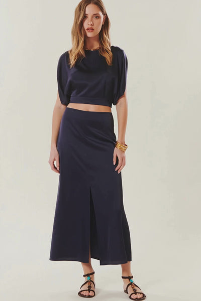 Audace e femminile, il top Balto illumina la silhouette con il suo tessuto satinato e il taglio fluido. La schiena scoperta con laccio aggiunge un tocco sensuale e sofisticato, perfetto per un outfit estivo elegante o un look da sera raffinato.