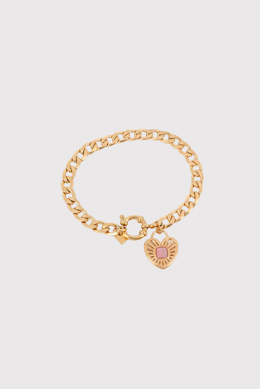 Bracelet en acier inoxydable sur maille composé d'un pendentif en coeur ajouré serti d'une pierre naturelle.