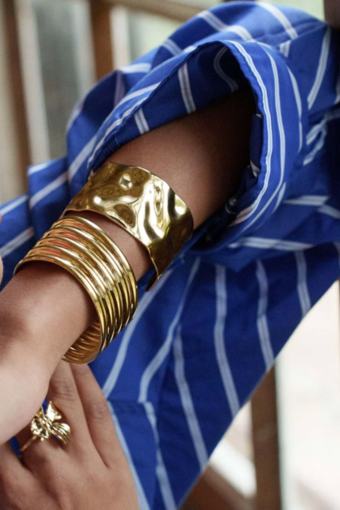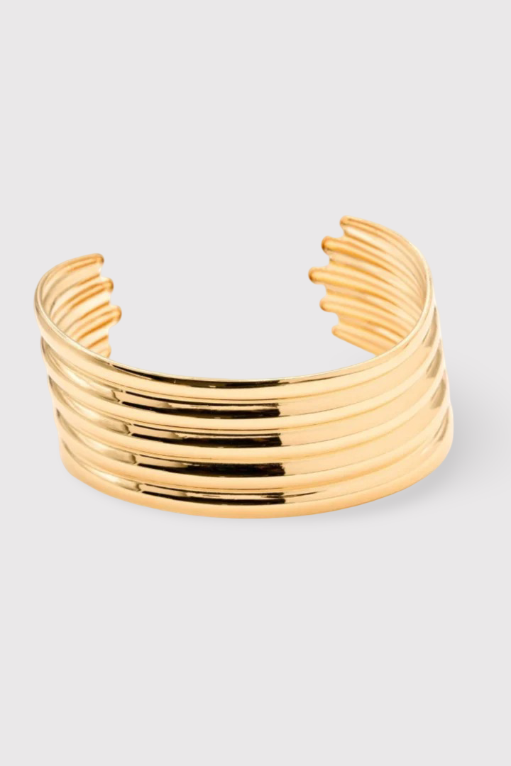 Bracciale in acciaio inossidabile con effetto leggermente ondulato di 5 barrette sovrapposte.