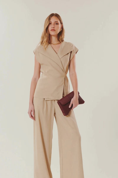Da abbinare a pantaloni larghi in lino o a una gonna fluida per un look armonioso. Indossalo con sandali minimalisti e alcuni gioielli dorati per un look moderno e luminoso.