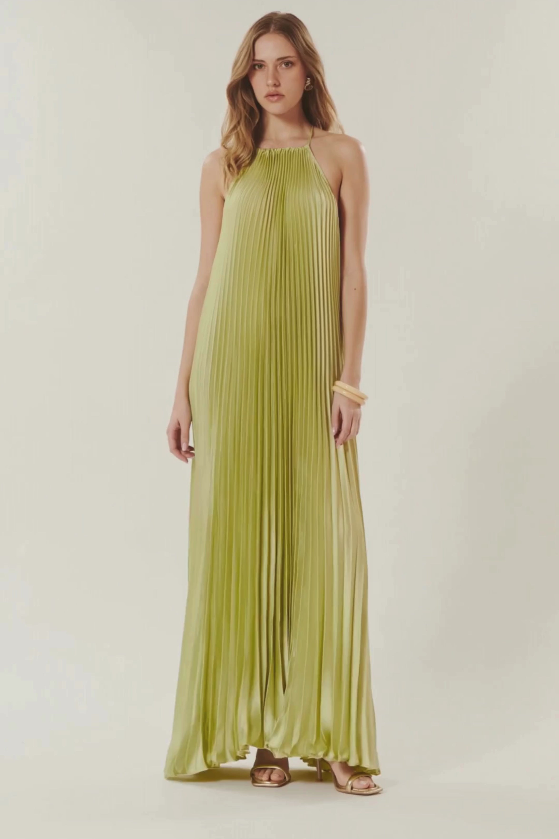 L'abito Sidney punta su un tessuto drappeggiato che dona movimento e leggerezza. Il suo taglio lungo cade graziosamente lungo il corpo. Si allaccia al collo e svela un'elegante schiena nuda, pur rimanendo comodo. Senza maniche, mette in risalto le spalle.